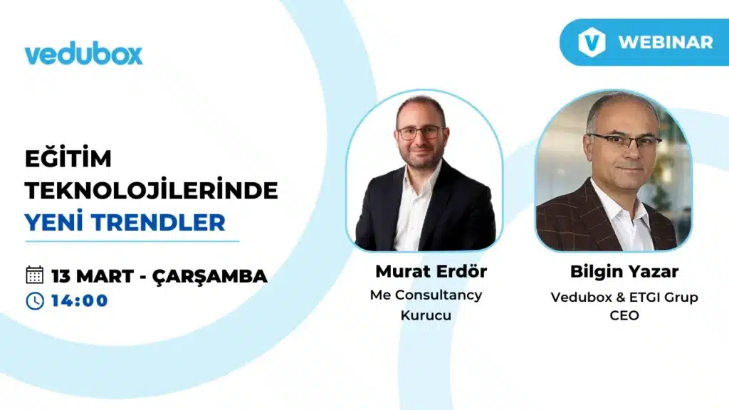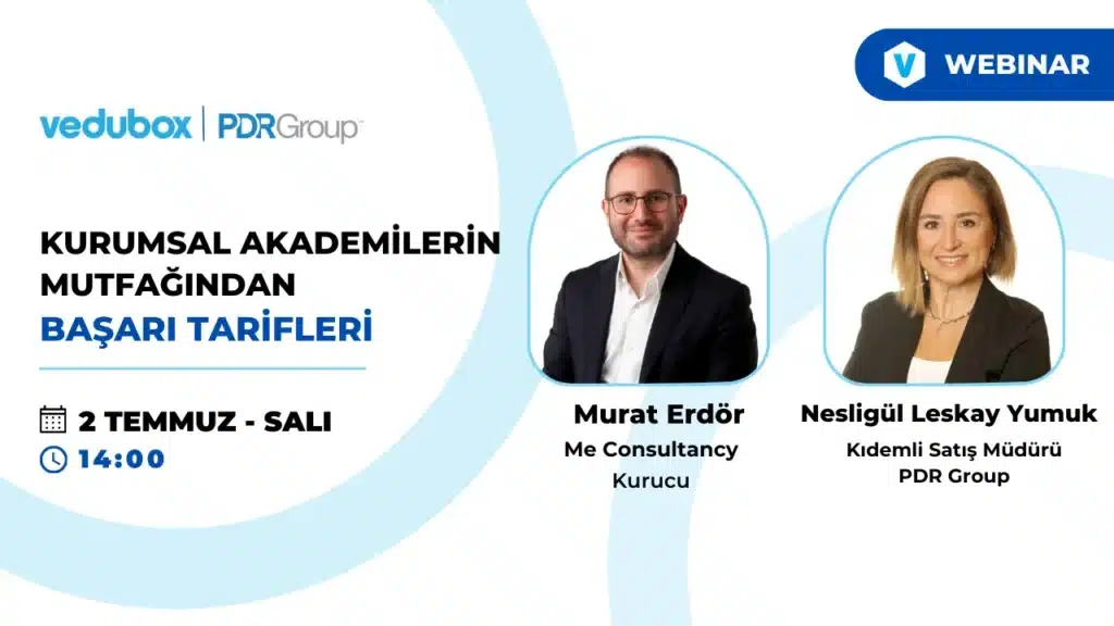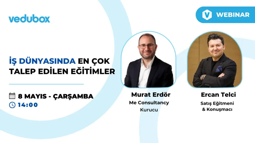 Vedubox ekipleri ve Vedubox sponsorluğundan düzenlenen webinarlar ile yetenek setinizi geliştirin ve iş yaşamında görünür olun. Online eğitim teknolojilerinden gündemde olan başlıklara kadar birçok önemli konunun konuşulduğu webinarlara kayıt olmak için acele edin.
